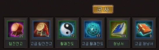 버프물약 군사파트와 장수 파트로 분류되어 있습니다